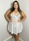 Camisola sensual com detalhes em renda. Modelo sem bojo.